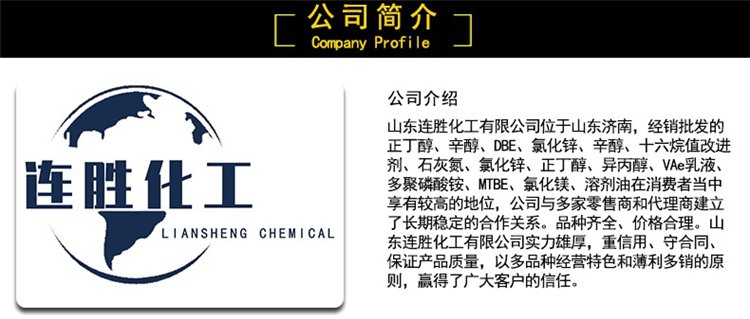 山東連勝化工有限公司主營:二氯甲烷。二氯乙烷。冰醋酸。乙醇 碳酸二甲酯。鈦酸四異丙酯。甲醇鈉。 苯酚。石油醚。二甲苯。四氯乙烯。mtbe。碳五 異丁醇。異辛醇。正辛醇。正己烷。正庚烷。甲醇。三乙醇胺等,期待您的咨詢! |